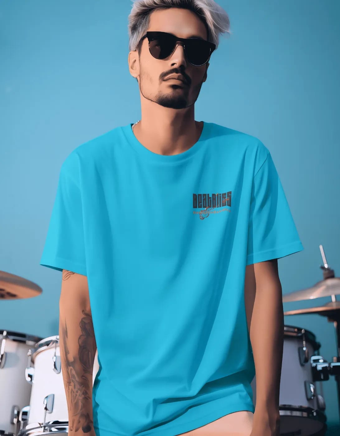 The vibrant aqua blue base makes the artwork pop, showcasing a futuristic guitarist graphic that reflects individuality and attitude. Designed with a relaxed oversized fit, it pairs effortlessly with joggers, cargo pants, or denim for a standout casual look.