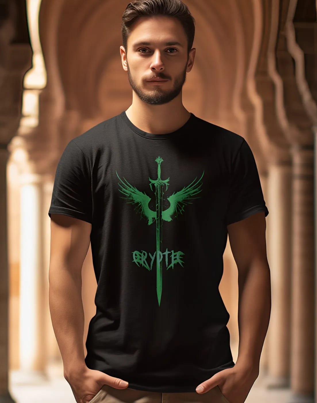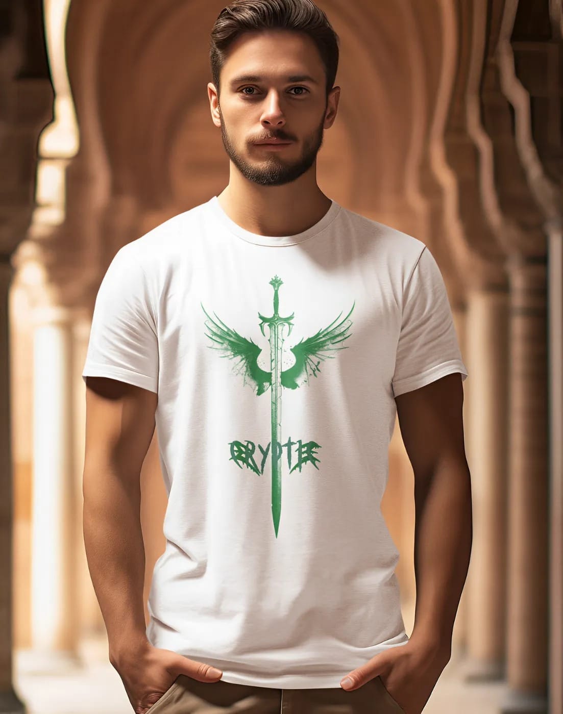 Unleash your bold side with the Cryptec Sword Graphic T-Shirt, designed for streetwear lovers who embrace power and style. Crafted from premium 180 GSM cotton, this regular fit t-shirt offers all-day comfort while keeping your look sharp and edgy.