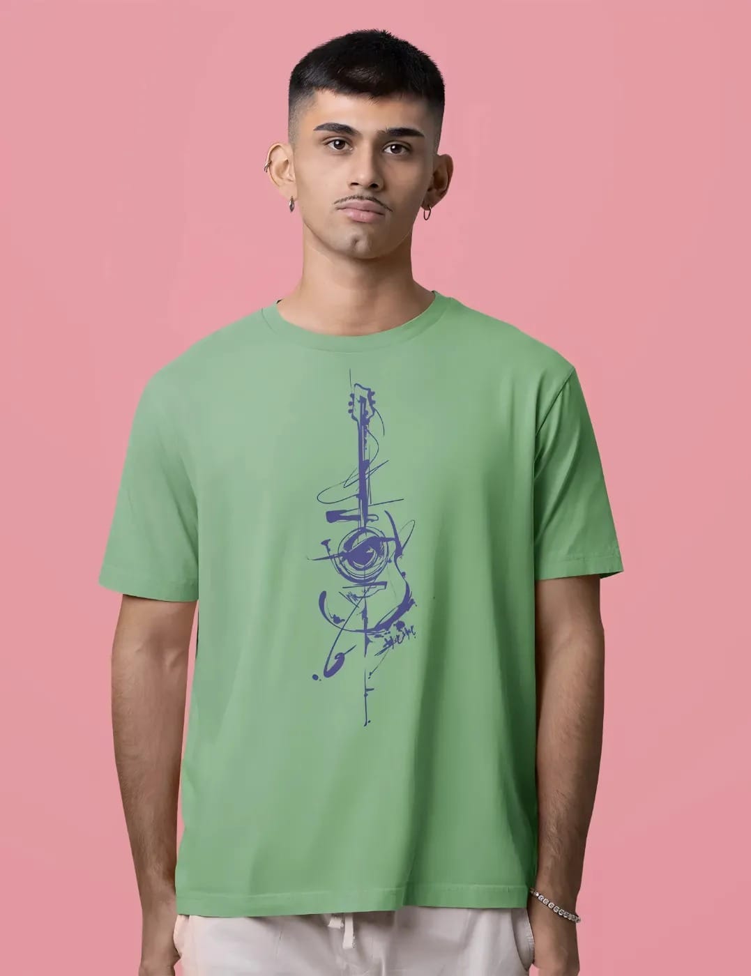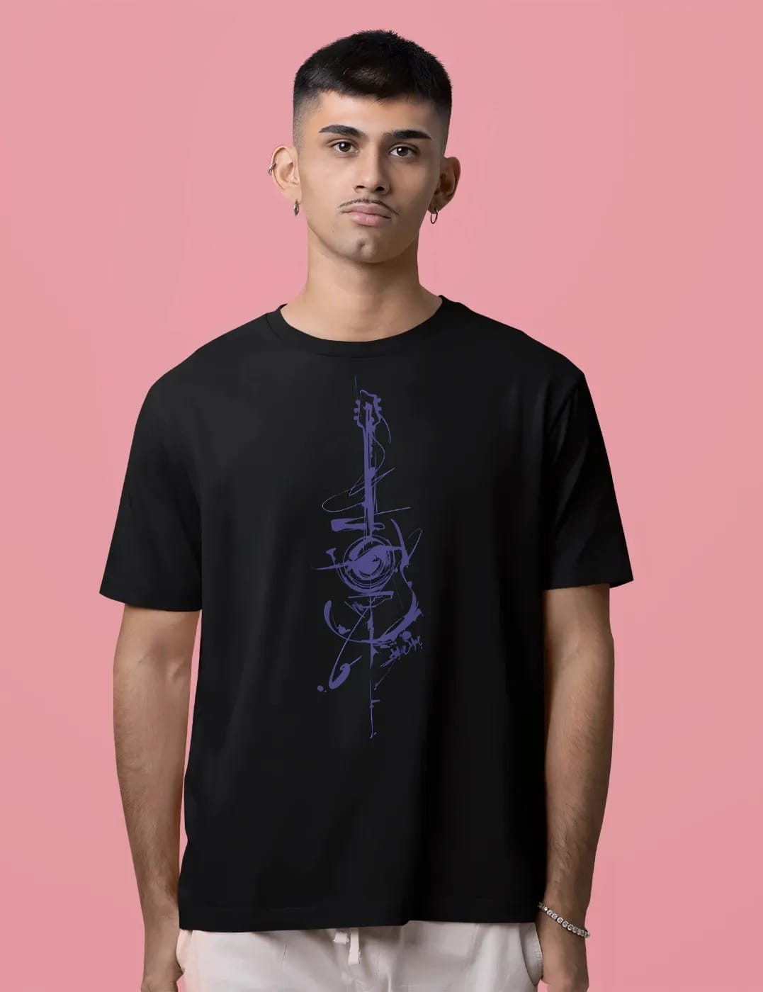 Prints N Plains (PNP) Guitar Abstract | Men’s Oversized Round Neck T-shirt